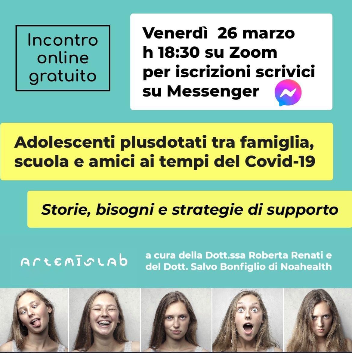 INCONTRO 4: Adolescenti plusdotati tra famiglia, scuola e amici ai tempi del Covid-19. Un webinar speciale, dedicato all’adolescenza e ai fattori protettivi che i genitori possono mettere in atto per aiutare i ragazzi a modulare le reazioni emotive legate allo stress provocato dalla situazione che stanno vivendo.