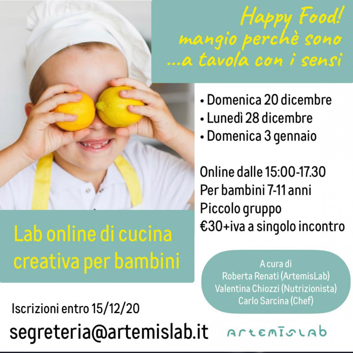 Il Lab sarà a cura della Dott.ssa Valentina Chiozzi, Specialista in Scienza dell’Alimentazione, della Dott.ssa Roberta Renati di ArtemisLab e dello Chef Carlo Sarcina!