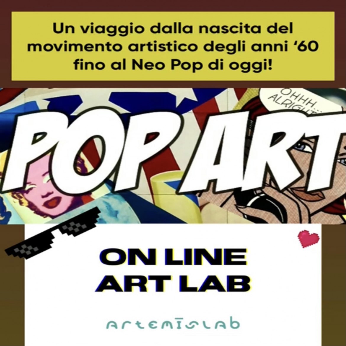 Tre incontri in cui scopriremo Andy Warhol il fondatore della Pop Art, Roy Lichtenstein un’icona del mondo grafico e Jeff Koons, artista eclettico esponente dell’arte Pop contemporanea: conosceremo questi grandi artisti e impareremo a riprodurre le loro tecniche creando le nostre personali opere Pop!
