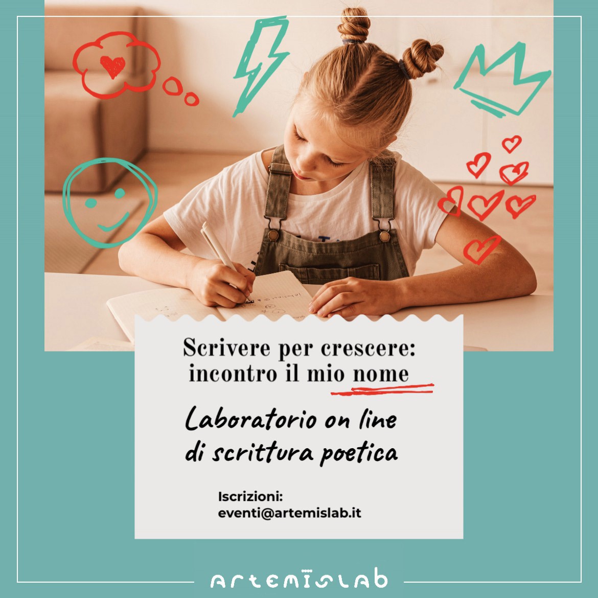 Fin dai primi anni di scuola ai bambini viene richiesto di narrare sè stessi attraverso la scrittura e successivamente, dalle ultime due classi della scuola primaria in poi, i ragazzi iniziano a cogliere la portata delle loro capacità comunicative ed espressive. Tuttavia imparare a mettere nero su bianco idee, immagini, emozioni può risultare complesso e frustrante, le parole possono diventare un muro invalicabile e il foglio bianco può sembrare uno spazio immenso in cui perdersi. In realtà esprimere sé stessi, raccontare il mondo circostante, i propri ricordi, descrivere sensazioni e sentimenti è un gioco stimolante e creativo che ci permette di prendere confidenza con le parole partendo da quella che più di tutte ci identifica: il nostro nome. Da questa idea nasce il nostro nuovo laboratorio on line di scrittura poetica SCRIVERE PER CRESCERE: INCONTRO IL MIO NOME I bambini attraverso una serie di giochi ed esercizi pratici inizieranno a utilizzare la scrittura come strumento di espressione di sé e della realtà armonizzando suoni, immagini, forma grafica, ritmo e sintassi. Il laboratorio è tenuto dalla Dott.ssa Cristina Balzaretti insegnante, pedagogista, poeta, esperta in scrittura poetica e creativa, con la presenza della Dott.ssa Roberta Renati di ArtemisLab.